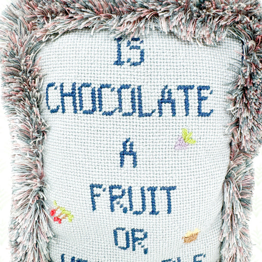 Vintage Handmade Needlepoint Pillow, Is Chocolate A Fruit or Vegetable?