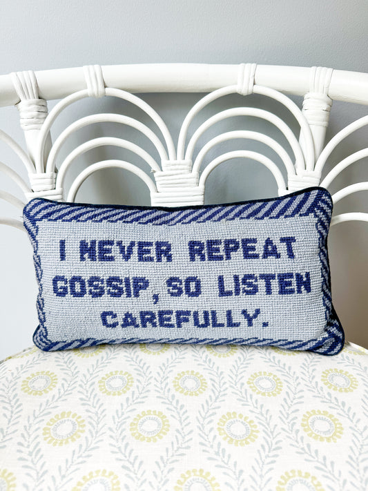 Vintage Needlepoint Pillow, I Never Repeat Gossip So Listen Carefully