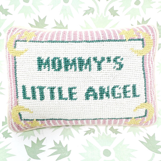 Vintage Needlepoint Pillow, Mommy's Little Angel