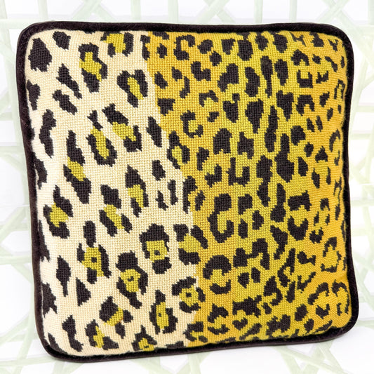 Vintage Handstitched Needlepoint Pillow, Leopard Print