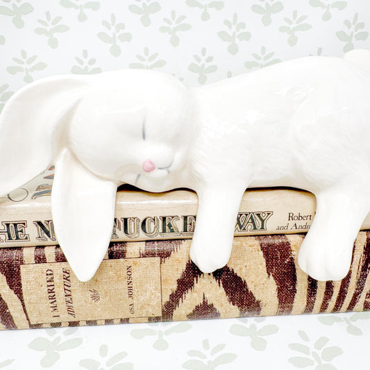 Vintage Shelf Sitter Figurine, White Sleeping Bunny Rabbit